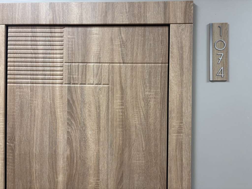 - В холле расположено лобби со стойкой ресепшн и лаунж зоны. При входе предусмотрено место хранения детского транспорта и колясок