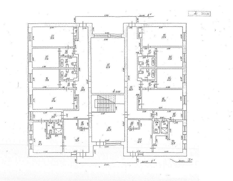 Здание - жилой корпус гостиничного типа. В комнатах санузлы. Балконы на 2м этаже.