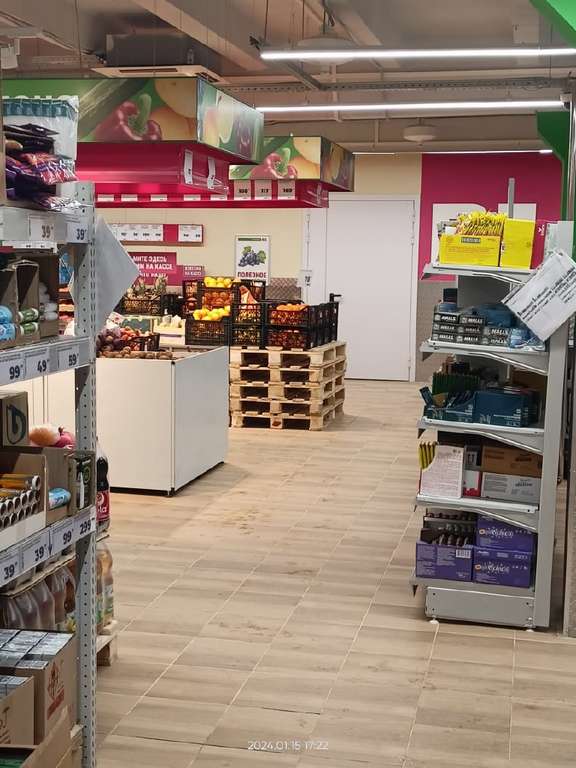 Внутри продуктового магазина "проходимость" (500-800 человек) каждый день. Сдаётся помещение в аренду. Под магазин. Цветочный Магазин и подарки. или Посуда и другие хозяйственные.
