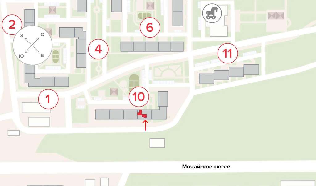 В новых корпусах 10 и 11 на первых этажах предусмотрена коммерческая инфраструктура: помещения с витринным остеклением, отдельными входами и всеми необходимыми коммуникациями. Постоянно растущее число жителей комплекса создаёт высокий пешеходный трафик, что делает такие помещения привлекательными для арендаторов.