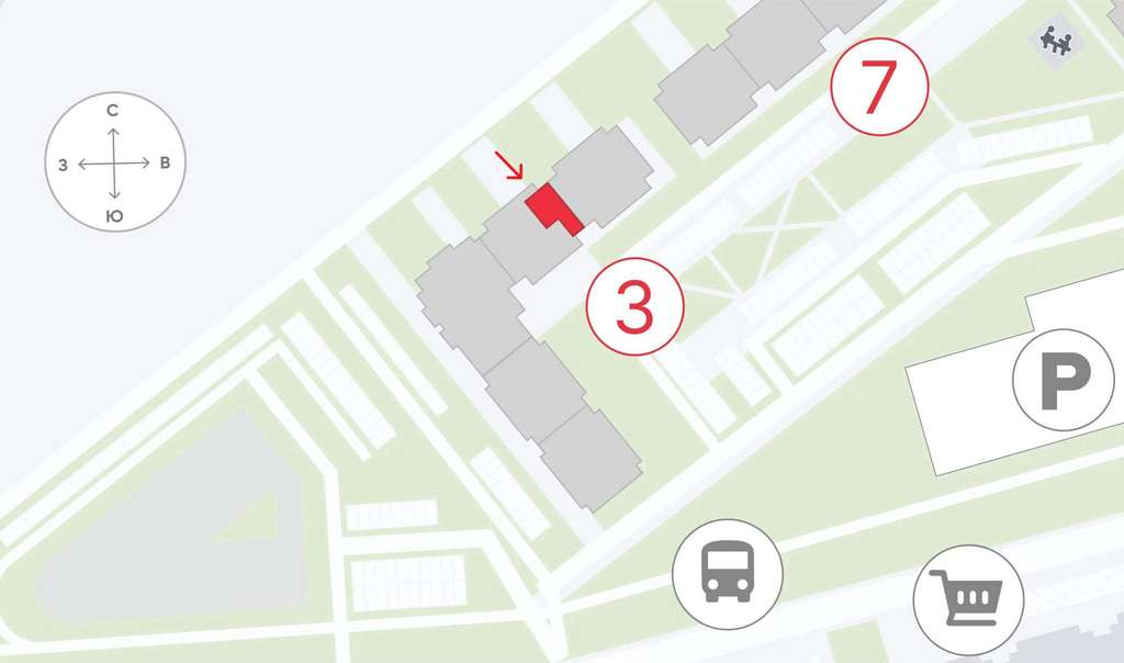 Локация активно развивается и формирует устойчивый пешеходный и автомобильный трафик. Комплекс ориентирован на постоянное проживание семей, что обеспечивает высокий спрос на повседневные товары и услуги. Дополнительный поток создаёт собственная инфраструктура ЖК: детский сад, школа и поликлиника.