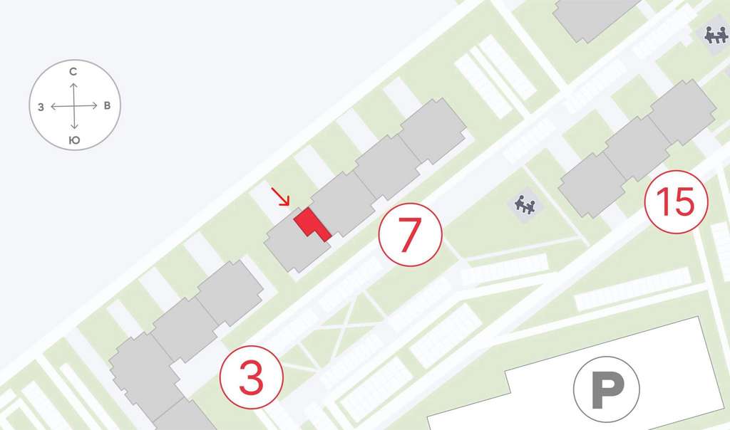 Локация активно развивается и формирует устойчивый пешеходный и автомобильный трафик. Комплекс ориентирован на постоянное проживание семей, что обеспечивает высокий спрос на повседневные товары и услуги. Дополнительный поток создаёт собственная инфраструктура ЖК: детский сад, школа и поликлиника.