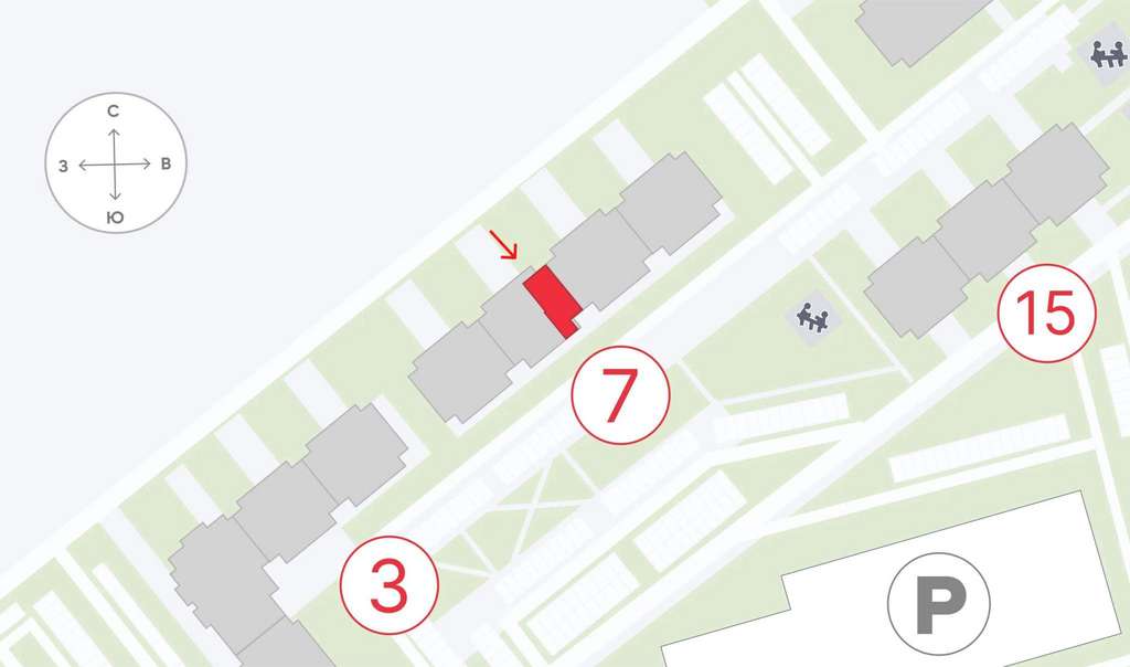 Локация активно развивается и формирует устойчивый пешеходный и автомобильный трафик. Комплекс ориентирован на постоянное проживание семей, что обеспечивает высокий спрос на повседневные товары и услуги. Дополнительный поток создаёт собственная инфраструктура ЖК: детский сад, школа и поликлиника.