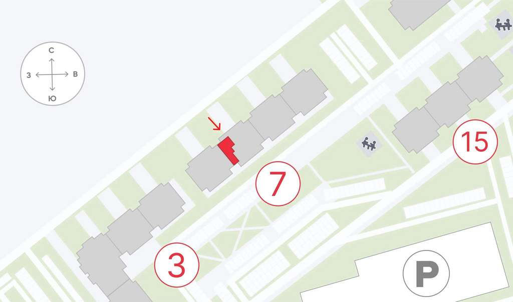 Локация активно развивается и формирует устойчивый пешеходный и автомобильный трафик. Комплекс ориентирован на постоянное проживание семей, что обеспечивает высокий спрос на повседневные товары и услуги. Дополнительный поток создаёт собственная инфраструктура ЖК: детский сад, школа и поликлиника.