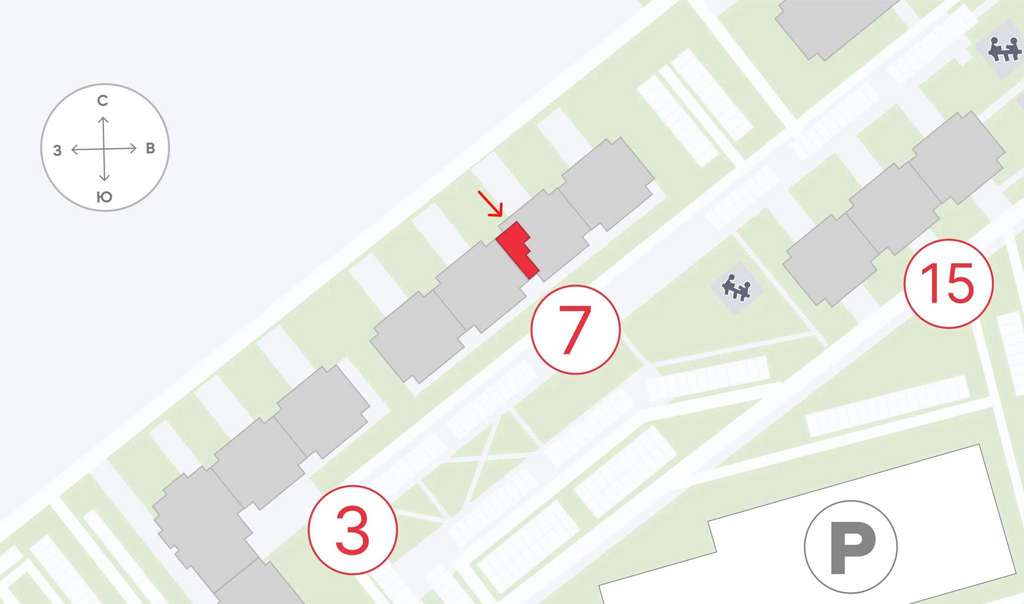 Локация активно развивается и формирует устойчивый пешеходный и автомобильный трафик. Комплекс ориентирован на постоянное проживание семей, что обеспечивает высокий спрос на повседневные товары и услуги. Дополнительный поток создаёт собственная инфраструктура ЖК: детский сад, школа и поликлиника.