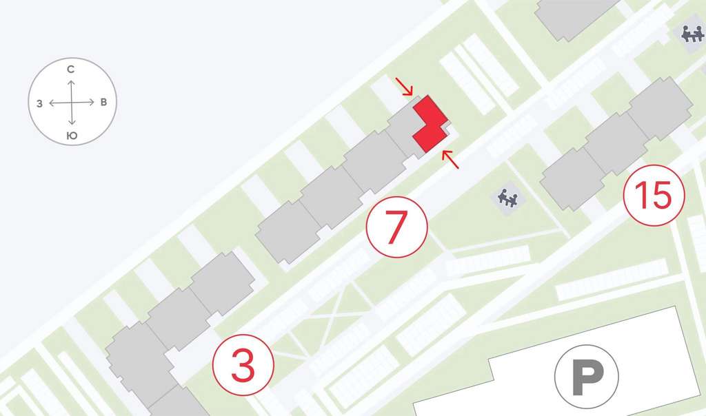 Локация активно развивается и формирует устойчивый пешеходный и автомобильный трафик. Комплекс ориентирован на постоянное проживание семей, что обеспечивает высокий спрос на повседневные товары и услуги. Дополнительный поток создаёт собственная инфраструктура ЖК: детский сад, школа и поликлиника.