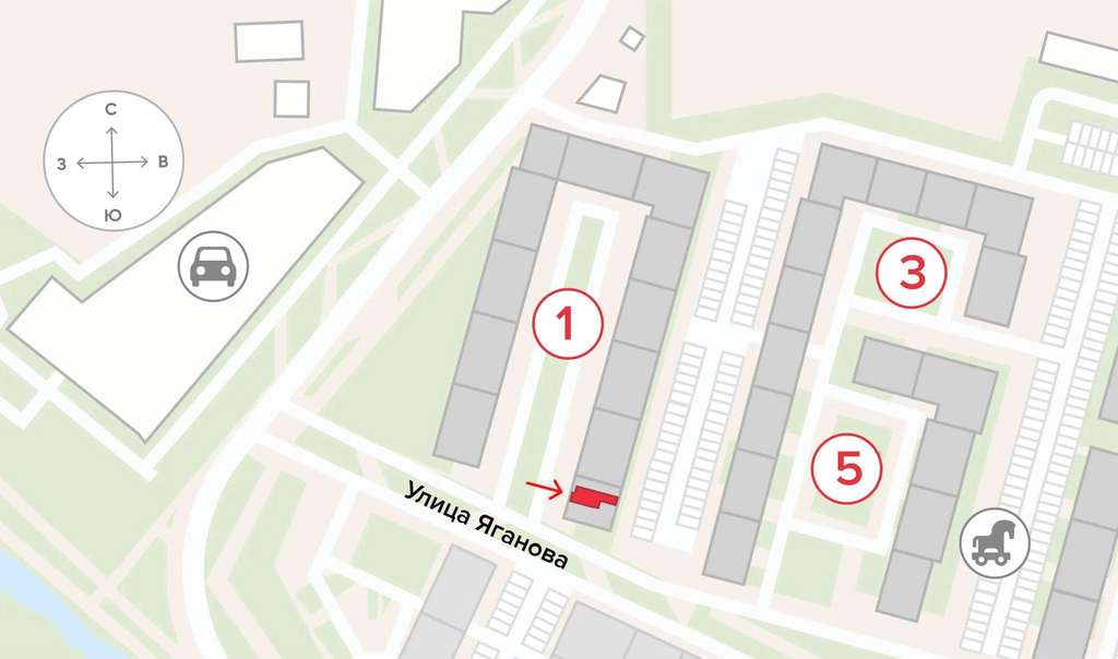 Сдаётся в аренду коммерческое помещение площадью 74,1 м на 1-м этаже 25-этажного жилого дома в ЖК «Пехра».