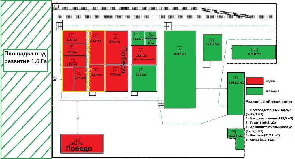 Варианты использования производственного комплекса: распределительный или таможенный терминал, производственно-складской комплекс с различными температурными режимами, площадка для размещения производства (мебельное, сборочное, пищевое производство, завод, склады и т. д).