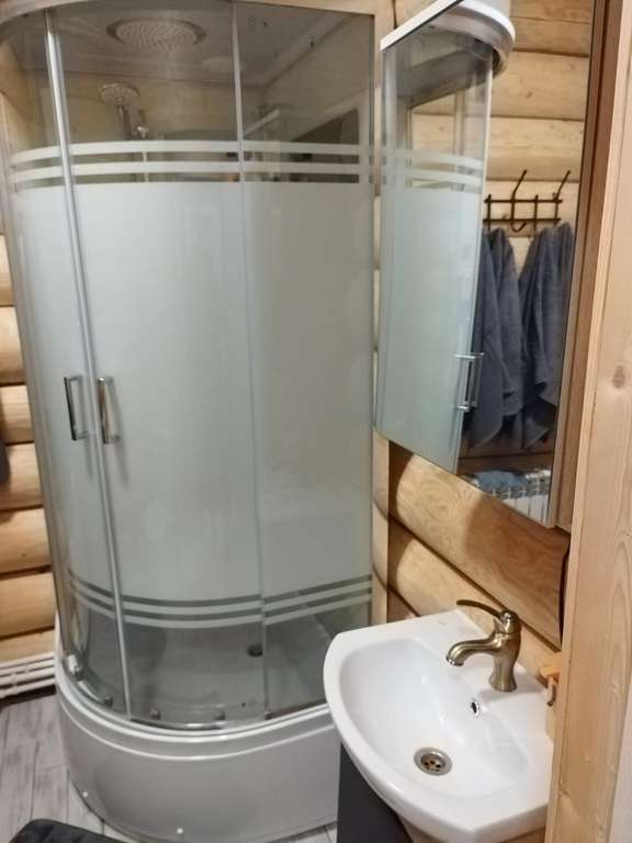 Ванная комната с душевой кабиной, туалетом, умывальником. Фен, полотенца, гигиенические и туалетные принадлежности – в наличии.