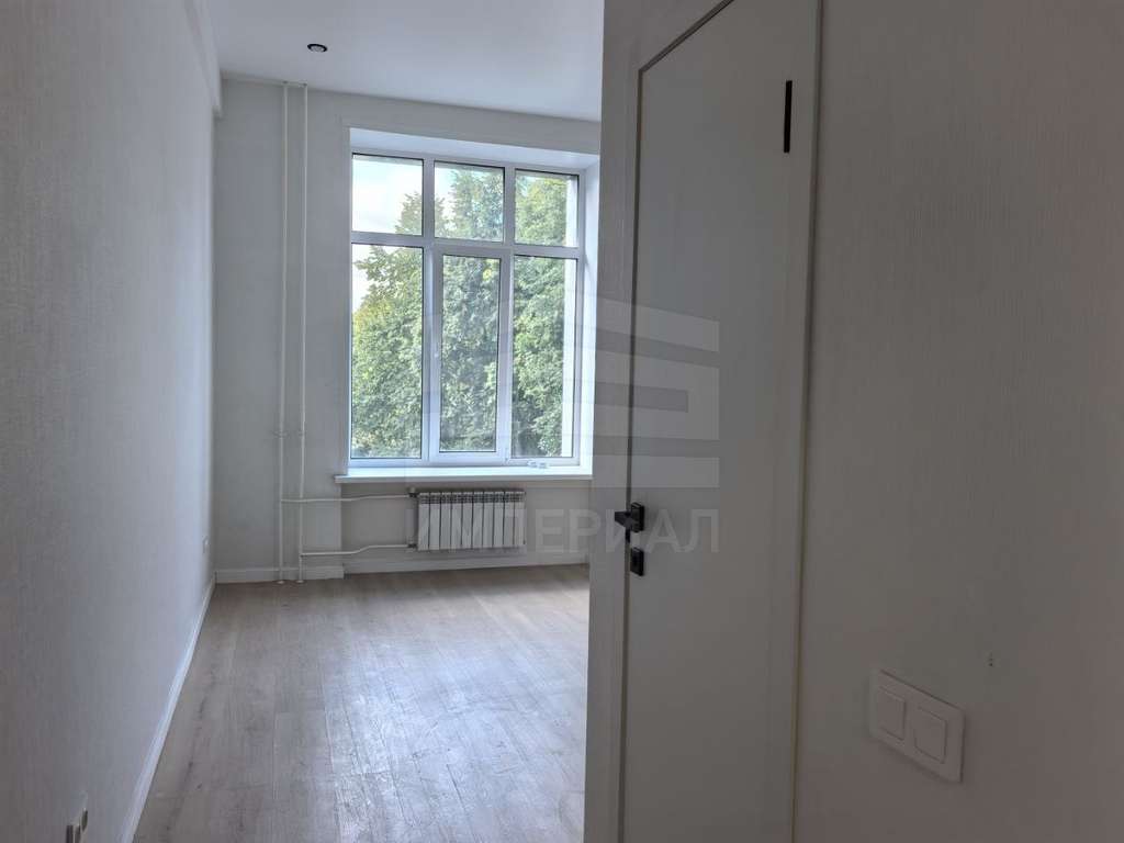 На стенах поклеены обои под покраску, на полу постелен ламинат с плинтусами и откосами. Есть вытяжная вентиляция в санузле и на кухне, выходы хв/гв, место под раковину на кухне. Кроме того, в помещениях уже есть выключатели освещения, розетки для бытовой техники и роутера, а также сделаны закладные для оптоволокна для интернета.
