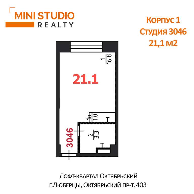 Продается студия с полной отделкой 21,1 кв. м в подмосковном городе Люберцы. Собственная огороженная охраняемая территория с парковкой