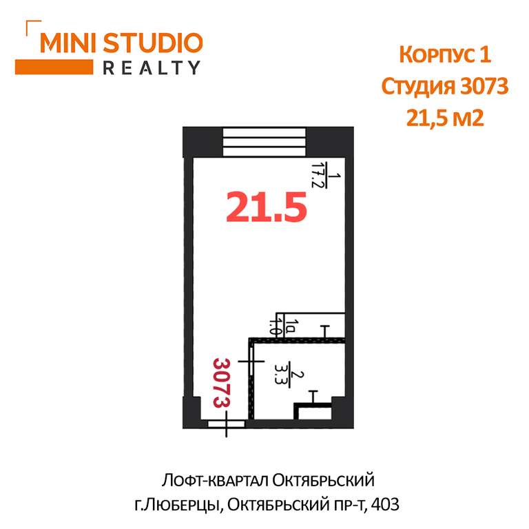 Продается студия готовая для проживания с полной отделкой 21,5 кв. м в подмосковном городе Люберцы.