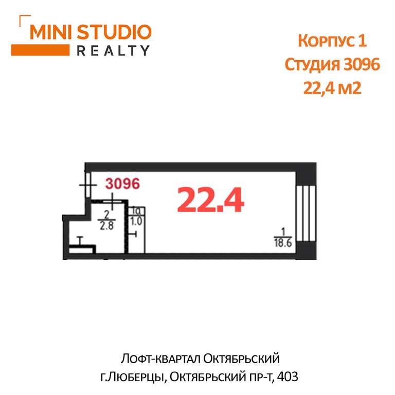 Продается студия готовая для проживания с полной отделкой 22,4 кв. м в подмосковном городе Люберцы.