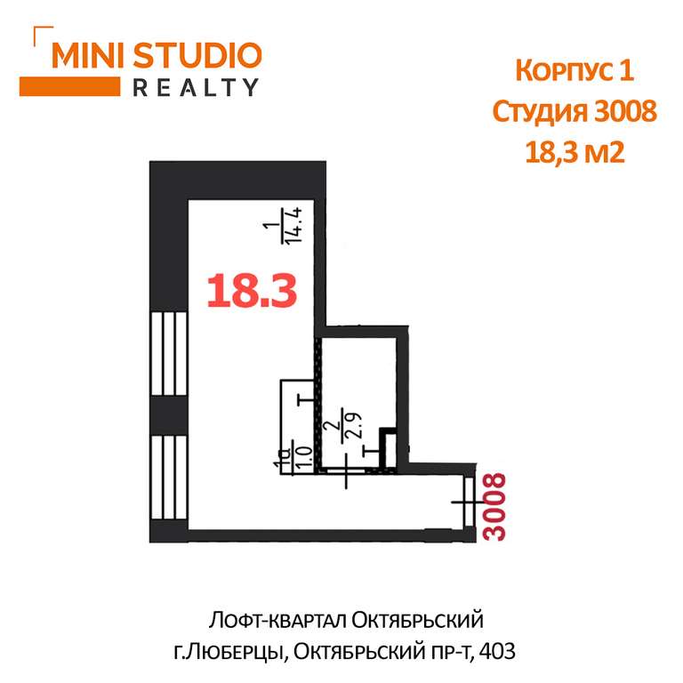 Компактная студия с отделкой 18,3 кв. м в подмосковном городе Люберцы. Собственная огороженная охраняемая территория с парковкой.