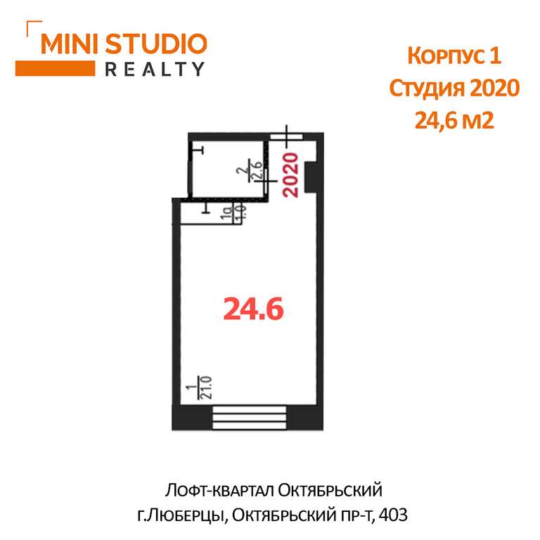 Компактная студия с отделкой 24,6 кв. м в подмосковном городе Люберцы. Собственная огороженная охраняемая территория с парковкой.