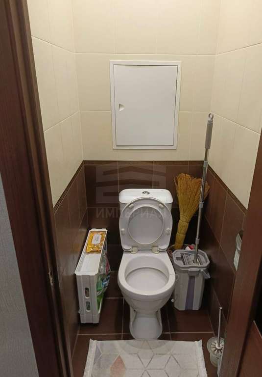 Внутри сделан ремонт, установлены натяжные потолки, на полу постелен ламинат, есть необходимая для проживания мебель, раздельный санузел. Отделка выполнена в светло-коричневых тонах, благодаря большим окнам помещение отлично освещается дневным светом.