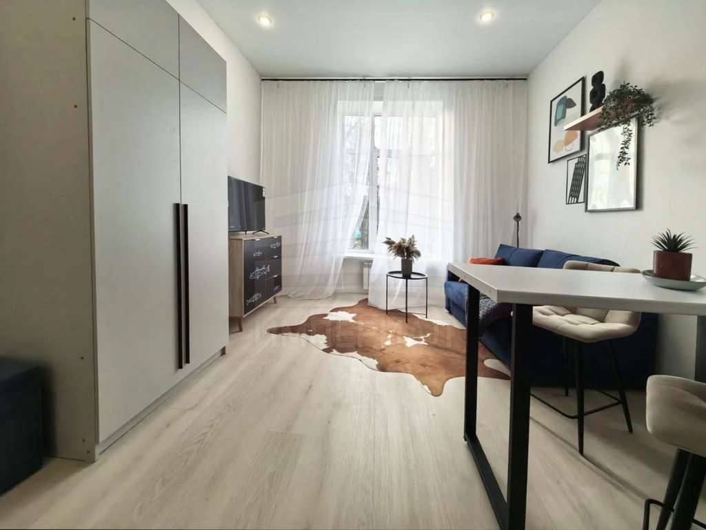 Здесь установлены новые надежные коммуникации и железобетонные перекрытия. В студии выполнена евроотделка, что избавит вас от лишних за от с обустройством помещения. Тут уже есть качественная металлическая дверь c внешней вставкой и зеркальной панелью, натяжные потолки, радиаторы. Санузел отделан под ключ.