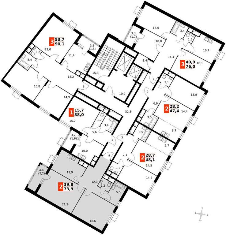 Продаётся 2-к квартира номер 35 общей площадью 74 кв. м. на 7-м этаже 13 этажного дома. Без отделки.