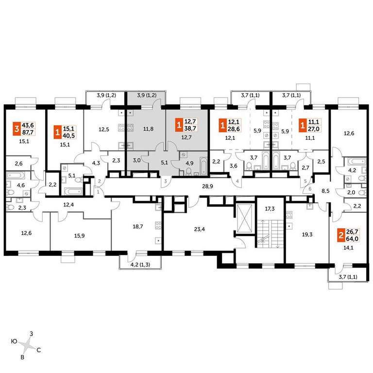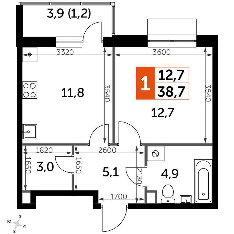 Продаётся 1-к квартира номер 59 общей площадью 38.6 кв. м. на 5-м этаже 9 этажного дома. Без отделки.