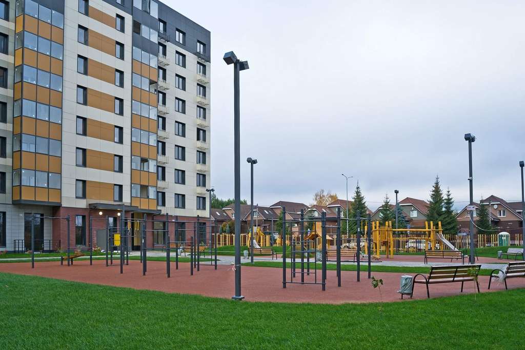 Безопасные, богато оснащенные детские площадки: горки, качели, лестницы. Детские площадки зонированы по возрастам.