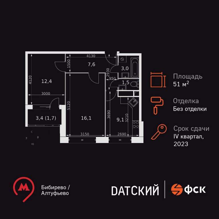 Продаётся 2-к квартира номер 831 общей площадью 51.4 кв. м. на 7-м этаже 9 этажного дома. Без отделки. Цена с учётом скидки!