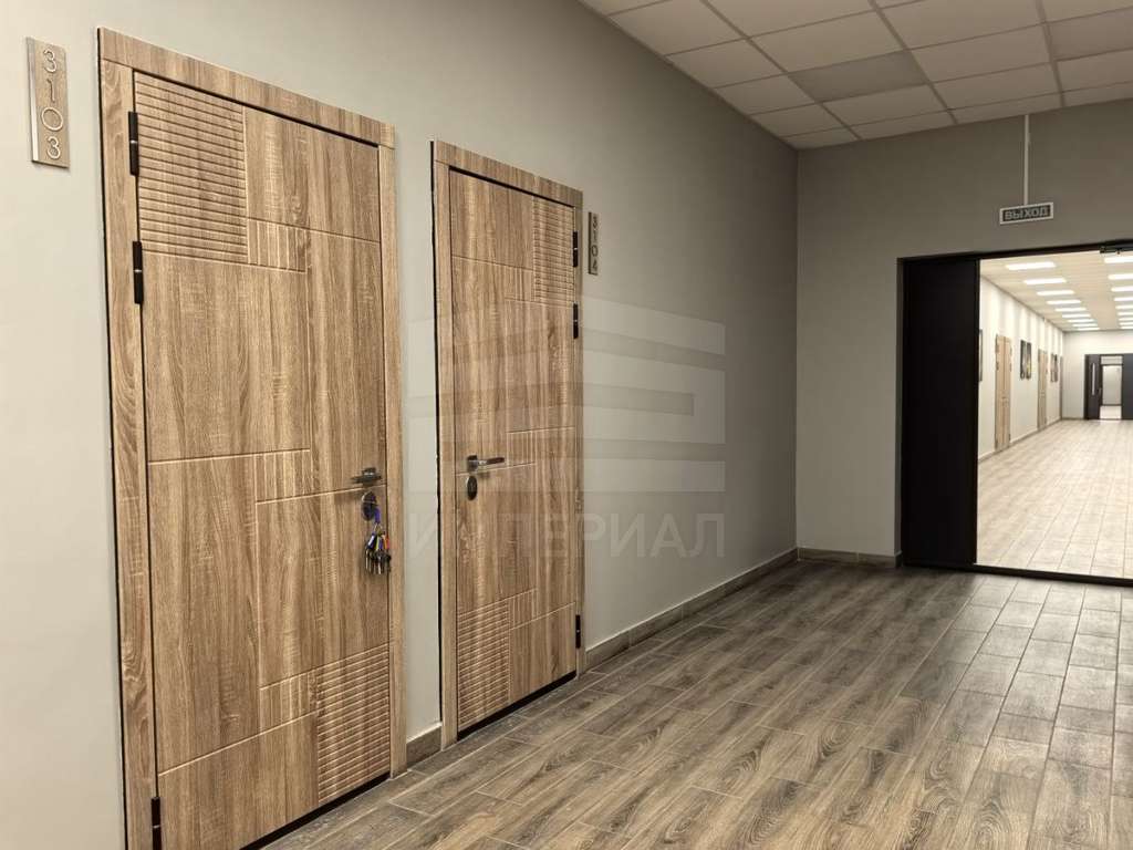 На стенах поклеены обои под покраску, на полу постелен ламинат с плинтусами и откосами. Есть вытяжная вентиляция в санузле и на кухне, выходы хв/гв, место под раковину на кухне. Кроме того, в помещениях уже есть выключатели освещения, розетки для бытовой техники и роутера, а также сделаны закладные для оптоволокна для интернета.