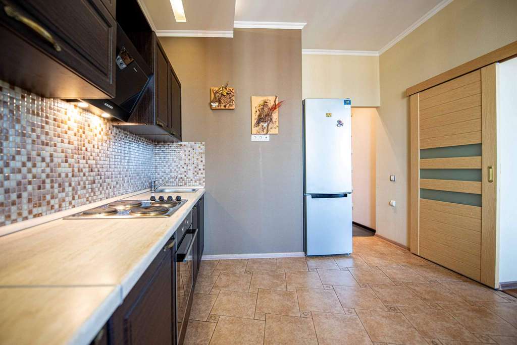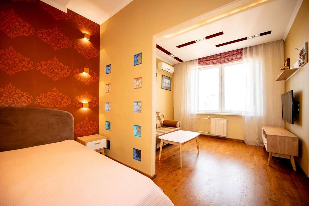 Большая современная 1-комн. квартира. Площадь 44,8 (41,4 + лоджия 3,4 кв. м.) /комната 20 кв. м./кухня 11,5 кв. м., высота потолка 3,00м. Имеется оборудованная гардеробная. Комната зонирована на спальню и гостиную. Во всей квартире выполнен евроремонт - выровнены стены, полы, в комнате паркетная доска из натурального дуба, санузел в плитке, инсталляция и ванна Jacob Delafon, теплые полы на кухне и в ванной, кондиционер. Вся инфраструктура в пешей доступности. 2 взрослых собственника, квартира приобреталась ими у застройщика. Свободная продажа. Показы по предварительной договоренности.