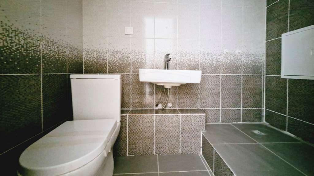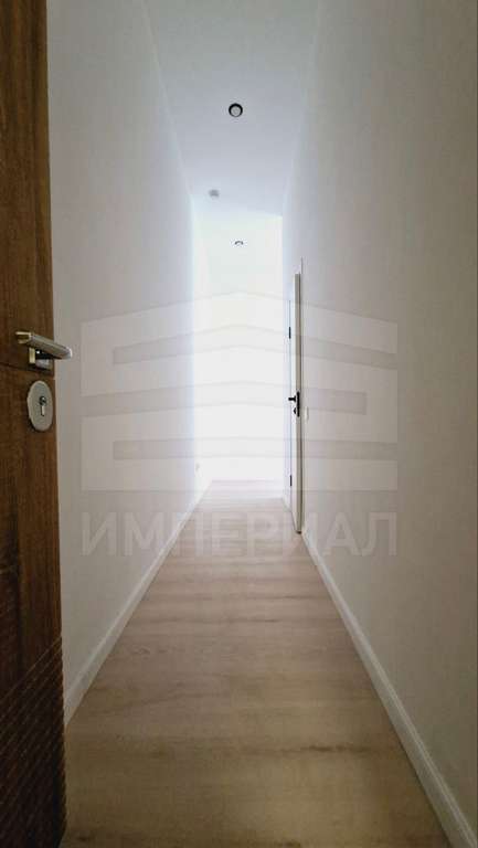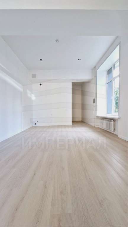 На стенах поклеены обои под покраску, на полу постелен ламинат с плинтусами и откосами. Есть вытяжная вентиляция в санузле и на кухне, выходы хв/гв, место под раковину на кухне. Кроме того, в помещениях уже есть выключатели освещения, розетки для бытовой техники и роутера, а также сделаны закладные для оптоволокна для интернета.
