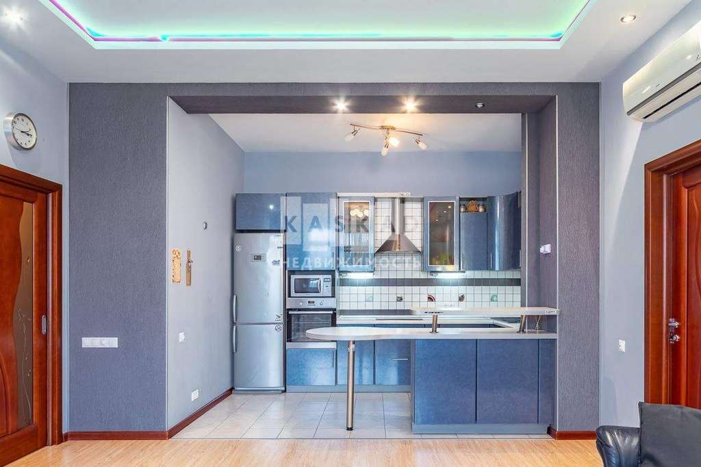 кухня + гостиная комната (встроенная кухня с барной стойкой совмещена с просторной гостиной. Помещение оснащено кондиционером, множеством вариантами освещения, 3 больших окна, с обеих сторон есть двери) ;