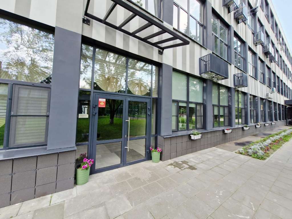Внутри выполнена стильная отделка в светлых тонах с использованием современных материалов, установлены новые инженерные коммуникации и противопожарная сигнализация. Помещение отлично освещено за счет высоких панорамных окон, высота потолков — до 4 метров.