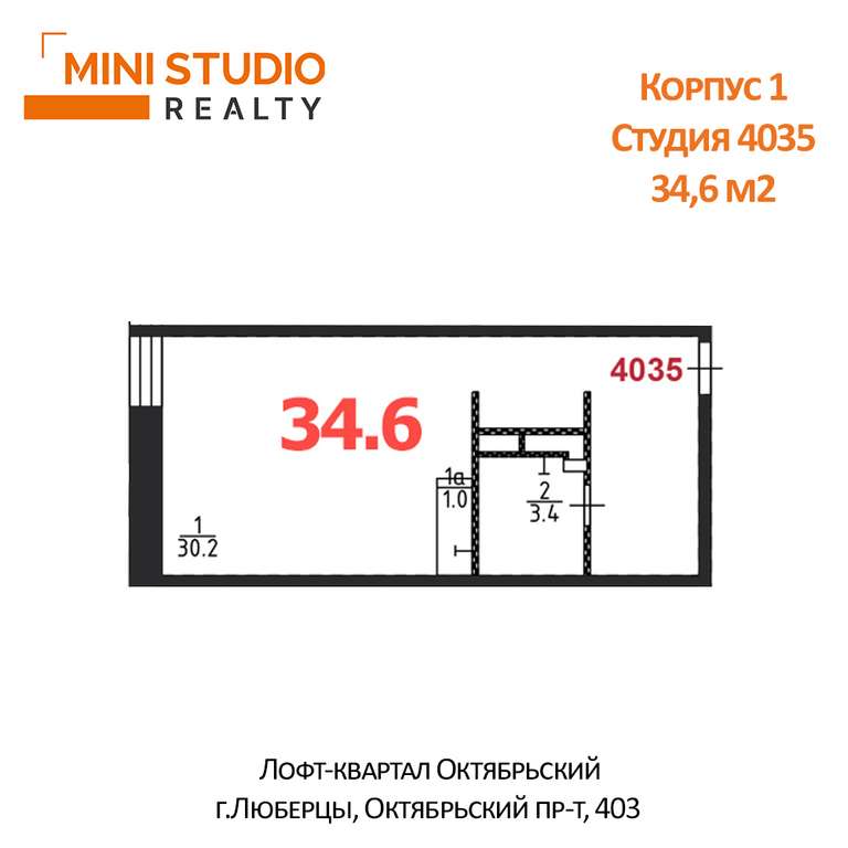 Продается большая студия 34,6 кв. м в подмосковном городе Люберцы. Собственная огороженная охраняемая территория с парковкой
