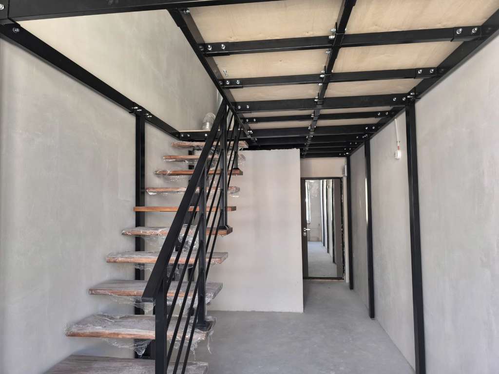 Антресоль разборная, но каркас, включая лестничный марш, уже смонтированы. Высота второго уровня без отделки 2,3 м., после проведения отделочных работ останется примерно 2 м, что вполне комфортно для размещения полноценной спальни.
