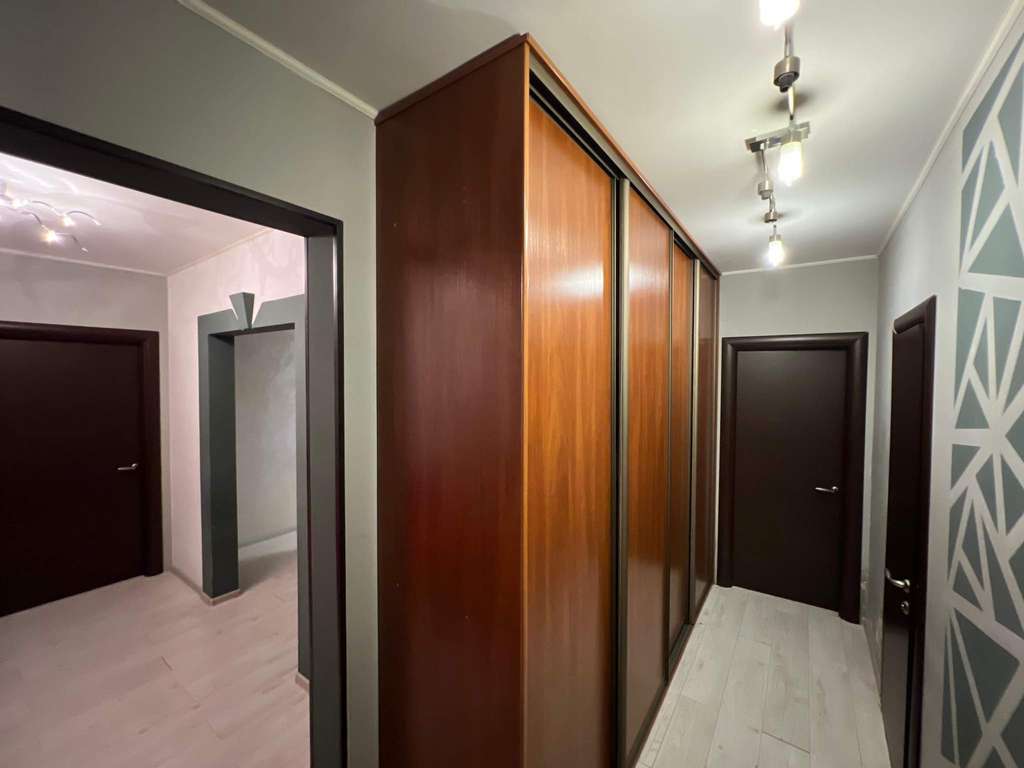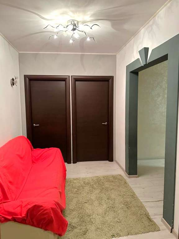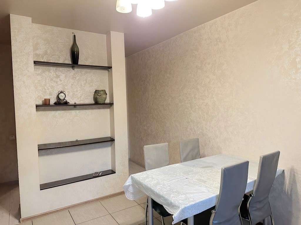 Квартира полностью обустроена для комфортного проживания. На кухне: кухонный гарнитур под единой столешницей со встроенной бытовой техникой, обеденная зона. В коридоре: шкафы-купе, зона отдыха с удобным диваном и телевизором. В первой комнате: двуспальная кровать, диван, рабочая зона. Во второй комнате: удобный двуспальный диван и рабочая зона. В детской комнате: функциональная детская с двуспальной кроватью. Санузел совмещен, в плитке до потолка. Окна выходят во двор.