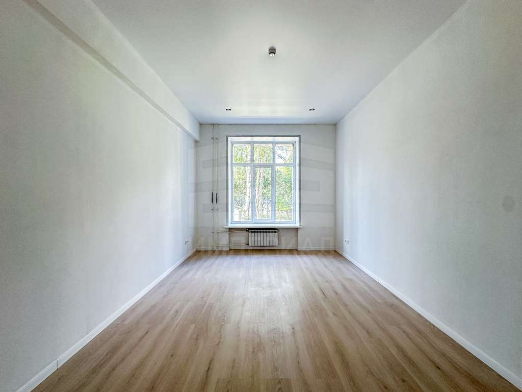 На стенах поклеены обои под покраску, на полу постелен ламинат с плинтусами и откосами. Есть вытяжная вентиляция в санузле и на кухне, выходы хв/гв, место под раковину на кухне. Кроме того, в помещениях уже есть выключатели освещения, розетки для бытовой техники и роутера, а также сделаны закладные для оптоволокна для интернета.