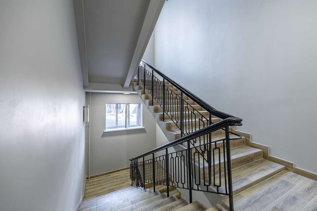 Здание после ремонта: качественные материалы, современный дизайн, просторные холлы, новое лифтовое оборудование.