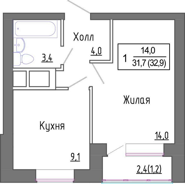 - 14.00 м2