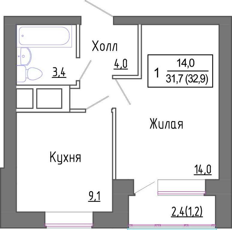 - 14.00 м2