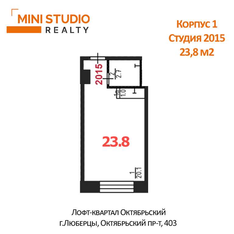 Студия в Люберцах. Готовая студия в комплексе со спортзалом, коворкингом, зоной для отдыха. Проект Лофт-квартал Октябрьский.