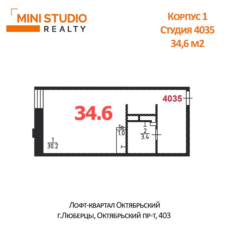 Продается большая студия 34,6 кв. м в подмосковном городе Люберцы. Собственная огороженная охраняемая территория с парковкой