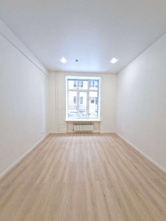 На стенах поклеены обои под покраску, на полу постелен ламинат с плинтусами и откосами. Есть вытяжная вентиляция в санузле и на кухне, выходы хв/гв, место под раковину на кухне. Кроме того, в помещениях уже есть выключатели освещения, розетки для бытовой техники и роутера, а также сделаны закладные для оптоволокна для интернета.