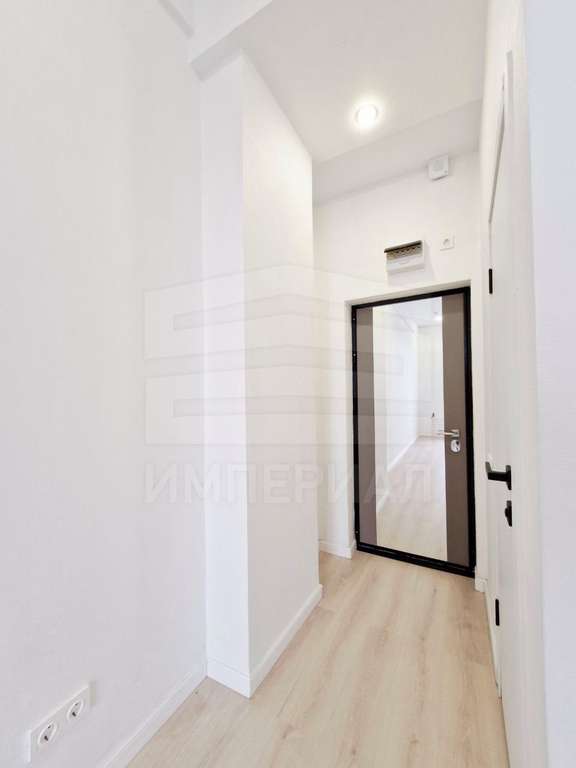 На стенах поклеены обои под покраску, на полу постелен ламинат с плинтусами и откосами. Есть вытяжная вентиляция в санузле и на кухне, выходы хв/гв, место под раковину на кухне. Кроме того, в помещениях уже есть выключатели освещения, розетки для бытовой техники и роутера, а также сделаны закладные для оптоволокна для интернета.