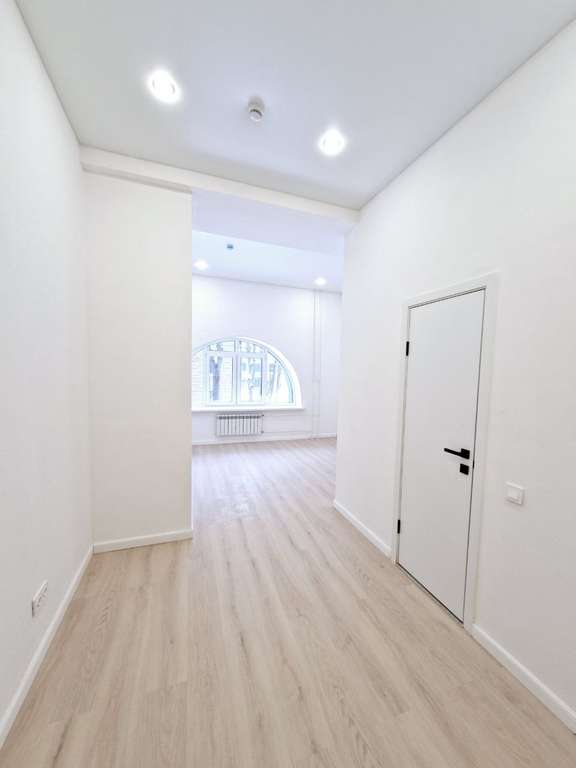 На стенах поклеены обои под покраску, на полу постелен ламинат с плинтусами и откосами. Есть вытяжная вентиляция в санузле и на кухне, выходы хв/гв, место под раковину на кухне. Кроме того, в помещениях уже есть выключатели освещения, розетки для бытовой техники и роутера, а также сделаны закладные для оптоволокна для интернета.