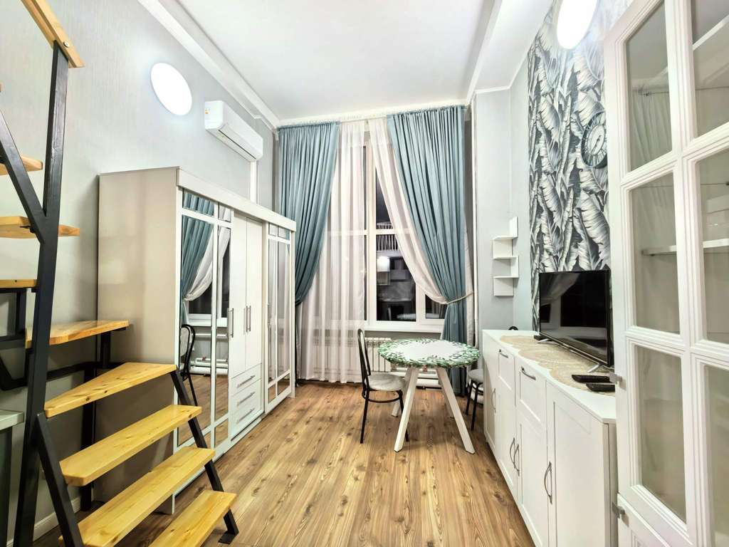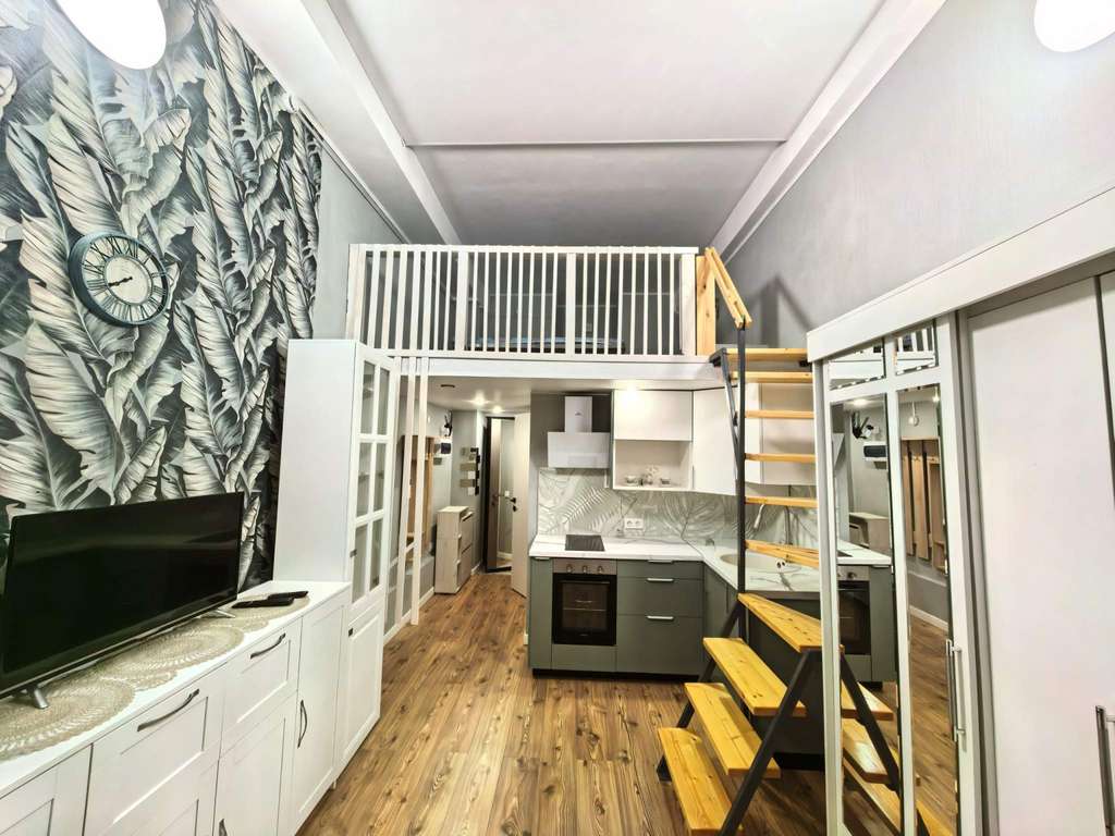 Внутри выполнена стильная отделка в светлых тонах с использованием современных материалов, установлены новые инженерные коммуникации и противопожарная сигнализация. Помещение отлично освещено за счет высоких панорамных окон, высота потолков 3,80 метров.