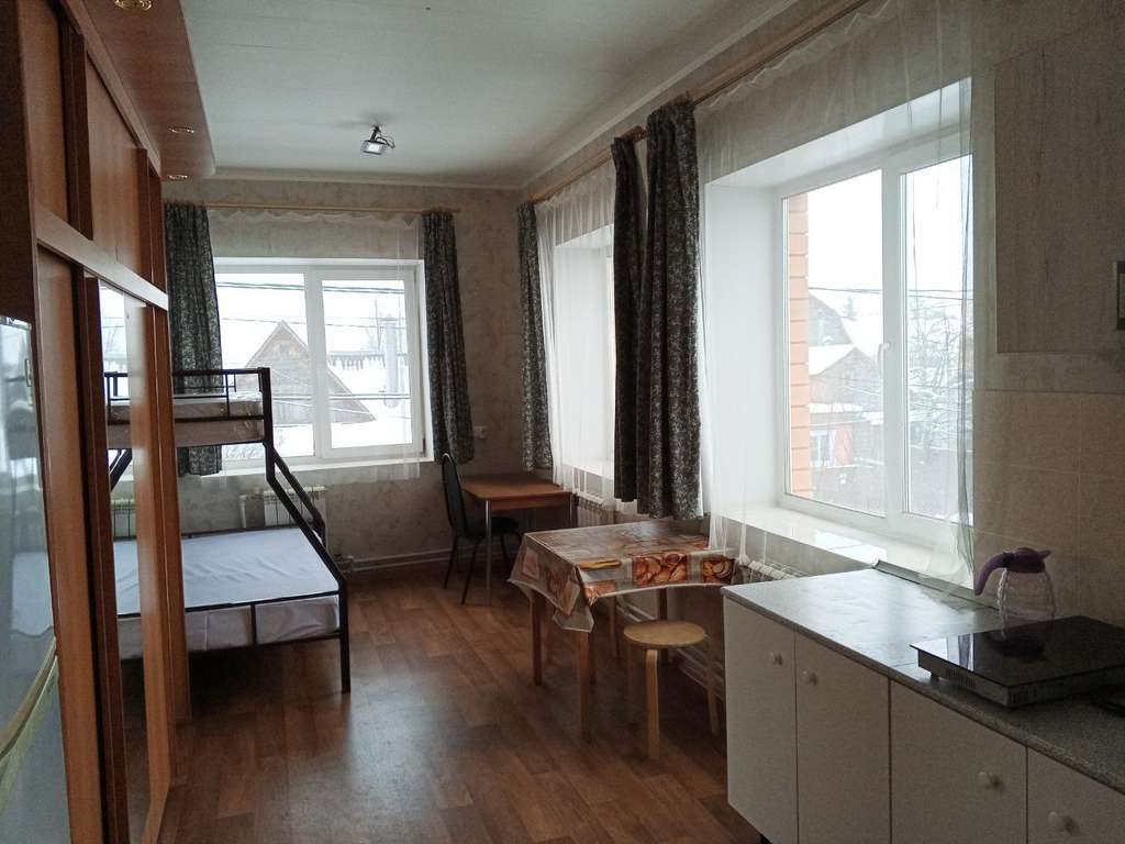 Студия на 2-м этаже с отдельным входом, свои счетчики (электр. и вода) + доля в земельном участке (огорода нет, все в бетоне) ; метраж квартиры 22,13 м; высота до потолка 300 см. ; с мебелью + кухней+ техникой, заезжай и живи (можно поставить кровать-чердак или высокий подиум под кроватью) ; окна выходят на Юг + Запад; Прописка;