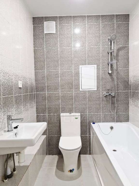 На стенах поклеены обои под покраску, на полу постелен ламинат с плинтусами и откосами. Есть вытяжная вентиляция в санузле и на кухне, выходы хв/гв, место под раковину на кухне. Кроме того, в помещениях уже есть выключатели освещения, розетки для бытовой техники и роутера, а также сделаны закладные для оптоволокна для интернета.