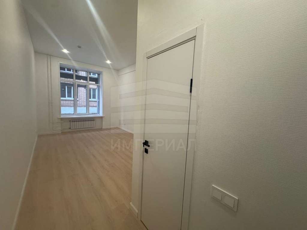 На стенах поклеены обои под покраску, на полу постелен ламинат с плинтусами и откосами. Есть вытяжная вентиляция в санузле и на кухне, выходы хв/гв, место под раковину на кухне. Кроме того, в помещениях уже есть выключатели освещения, розетки для бытовой техники и роутера, а также сделаны закладные для оптоволокна для интернета.