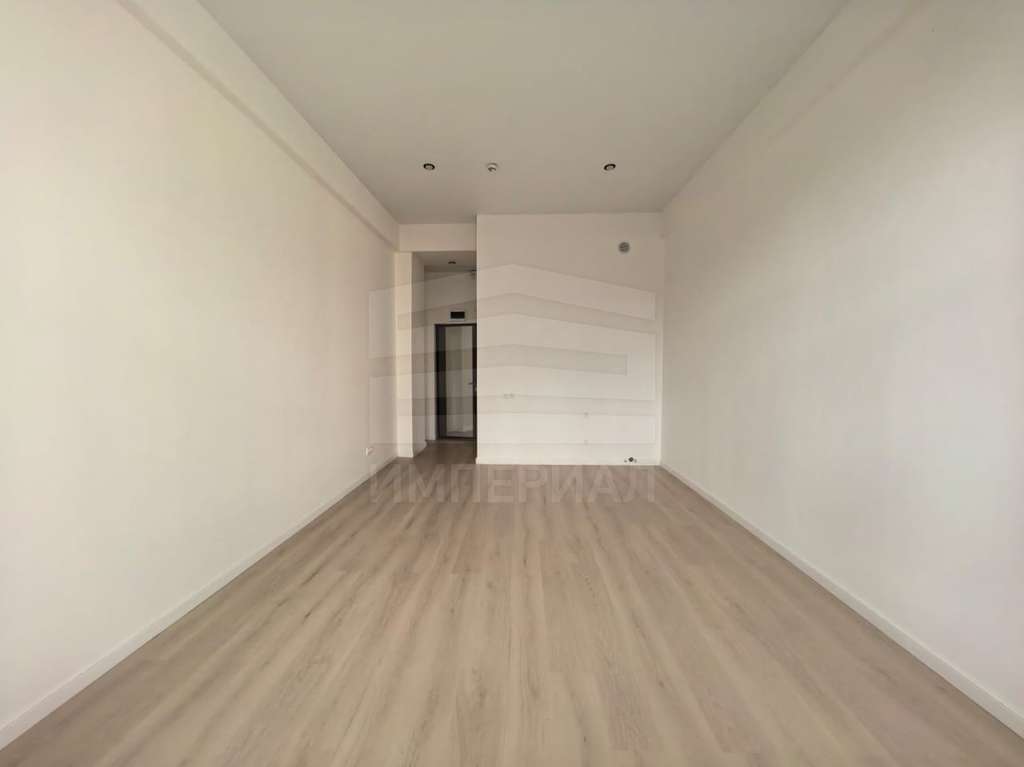 На стенах поклеены обои под покраску, на полу постелен ламинат с плинтусами и откосами. Есть вытяжная вентиляция в санузле и на кухне, выходы хв/гв, место под раковину на кухне. Кроме того, в помещениях уже есть выключатели освещения, розетки для бытовой техники и роутера, а также сделаны закладные для оптоволокна для интернета.