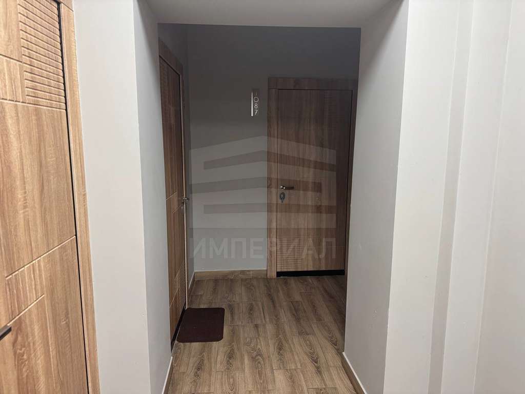 На стенах поклеены обои под покраску, на полу постелен ламинат с плинтусами и откосами. Есть вытяжная вентиляция в санузле и на кухне, выходы хв/гв, место под раковину на кухне. Кроме того, в помещениях уже есть выключатели освещения, розетки для бытовой техники и роутера, а также сделаны закладные для оптоволокна для интернета.