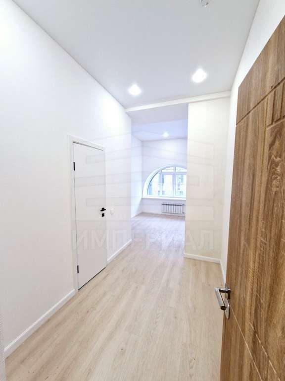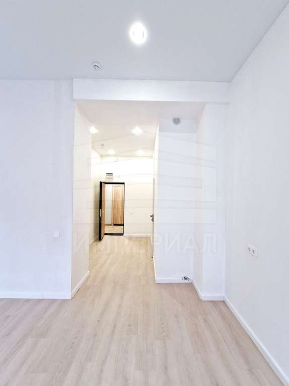 На стенах поклеены обои под покраску, на полу постелен ламинат с плинтусами и откосами. Есть вытяжная вентиляция в санузле и на кухне, выходы хв/гв, место под раковину на кухне. Кроме того, в помещениях уже есть выключатели освещения, розетки для бытовой техники и роутера, а также сделаны закладные для оптоволокна для интернета.