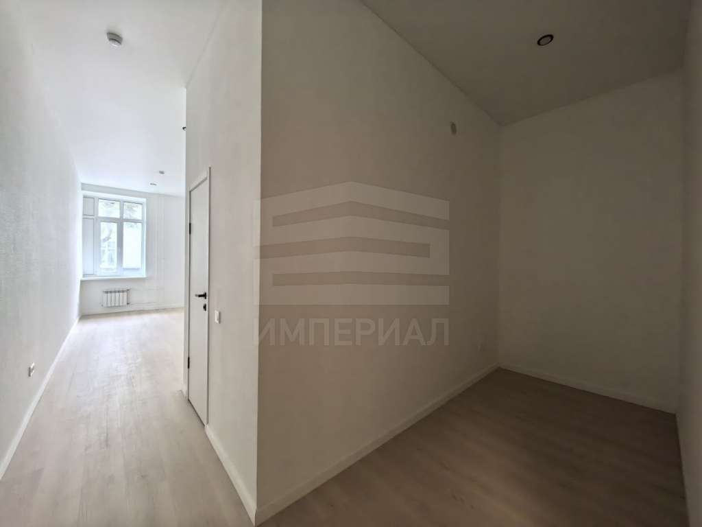 На стенах поклеены обои под покраску, на полу постелен ламинат с плинтусами и откосами. Есть вытяжная вентиляция в санузле и на кухне, выходы хв/гв, место под раковину на кухне. Кроме того, в помещениях уже есть выключатели освещения, розетки для бытовой техники и роутера, а также сделаны закладные для оптоволокна для интернета.